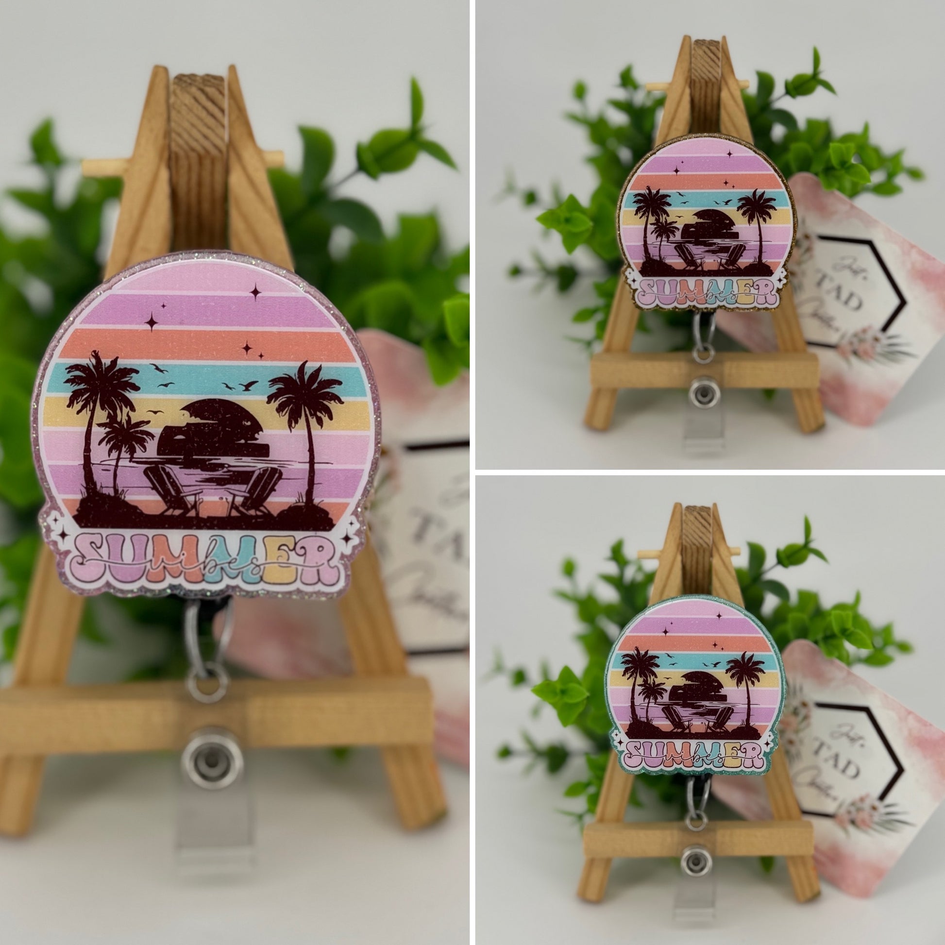 Capture the carefree spirit of summer with this Beach Sunset Summer Vibes Interchangeable Badge Topper. Perfect for swapping onto your favorite badge, it brings warm beach hues and sunset charm wherever you go. Add a splash of sunshine and good vibes to your day with this easy-to-change accessory.