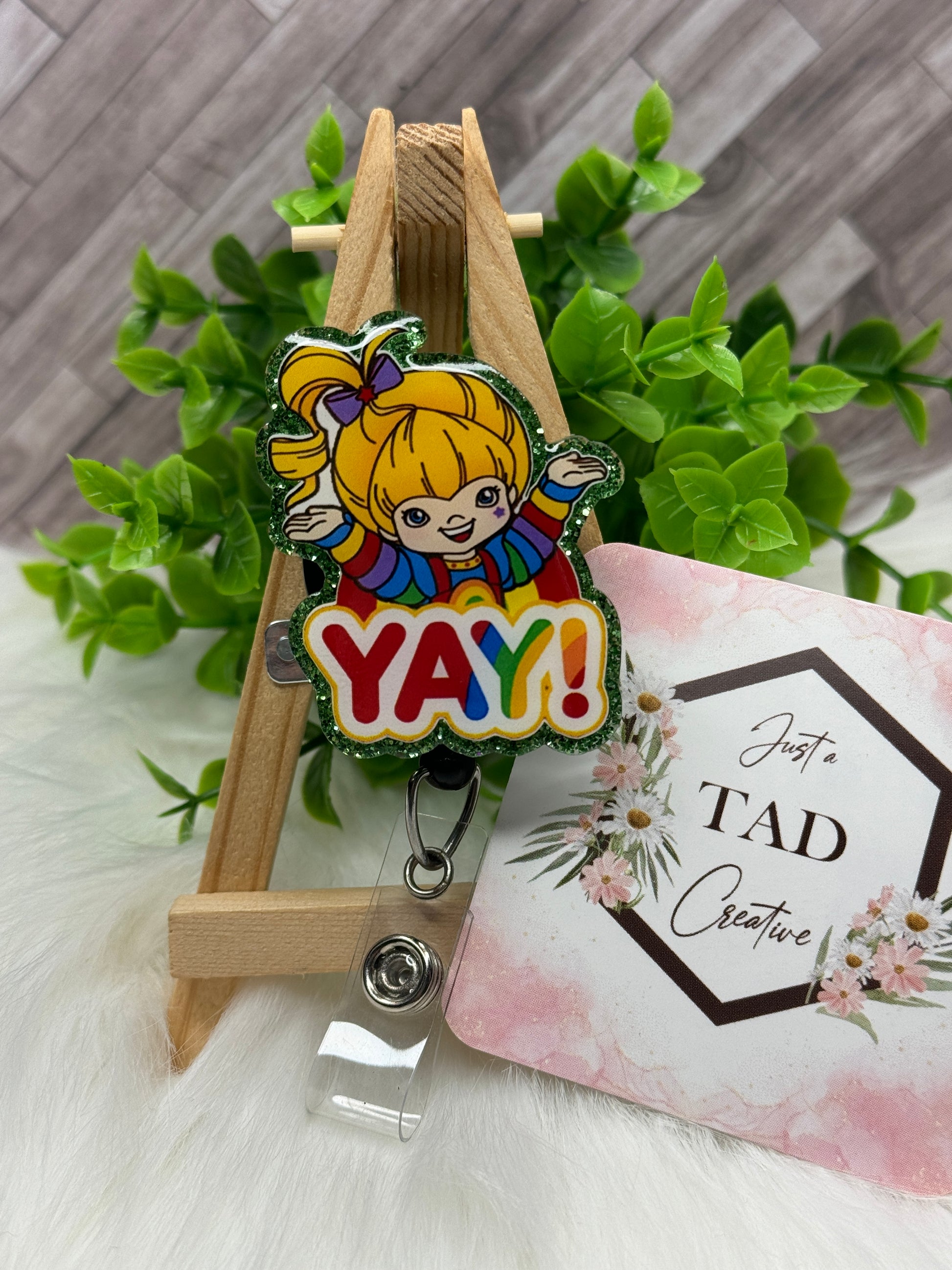 Add some playful flair to your work with our Rainbow Girl Cartoon Character Interchangeable Badge Reel Topper! This cheerful and colorful accessory is sure to bring some Yay! to your day. Easy to interchange and made with a fun and quirky design, it's perfect for those who don't take themselves too seriously.