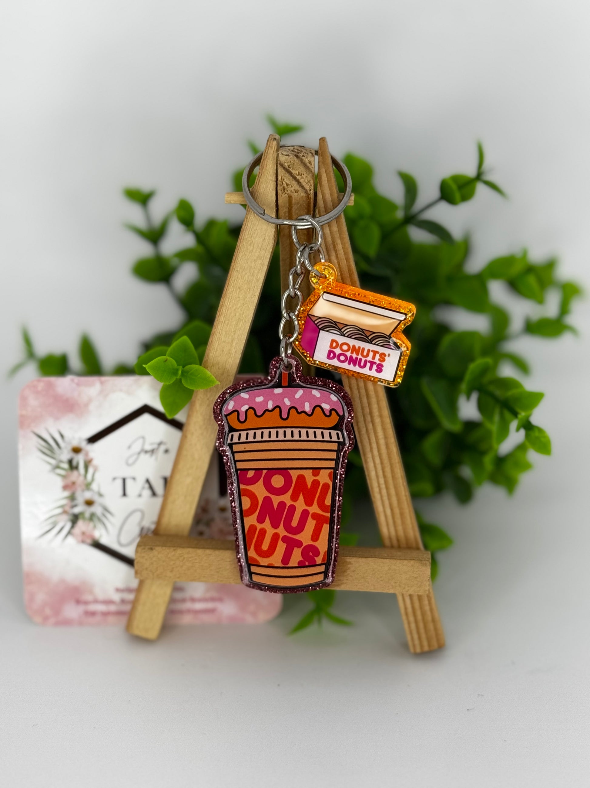 Add a touch of fun to your keys or bag with our Donuts & Coffee Glittered Keychain/Bag Tag. Showcase your love for coffee and donuts while keeping your keys organized. Perfect for on-the-go coffee lovers!