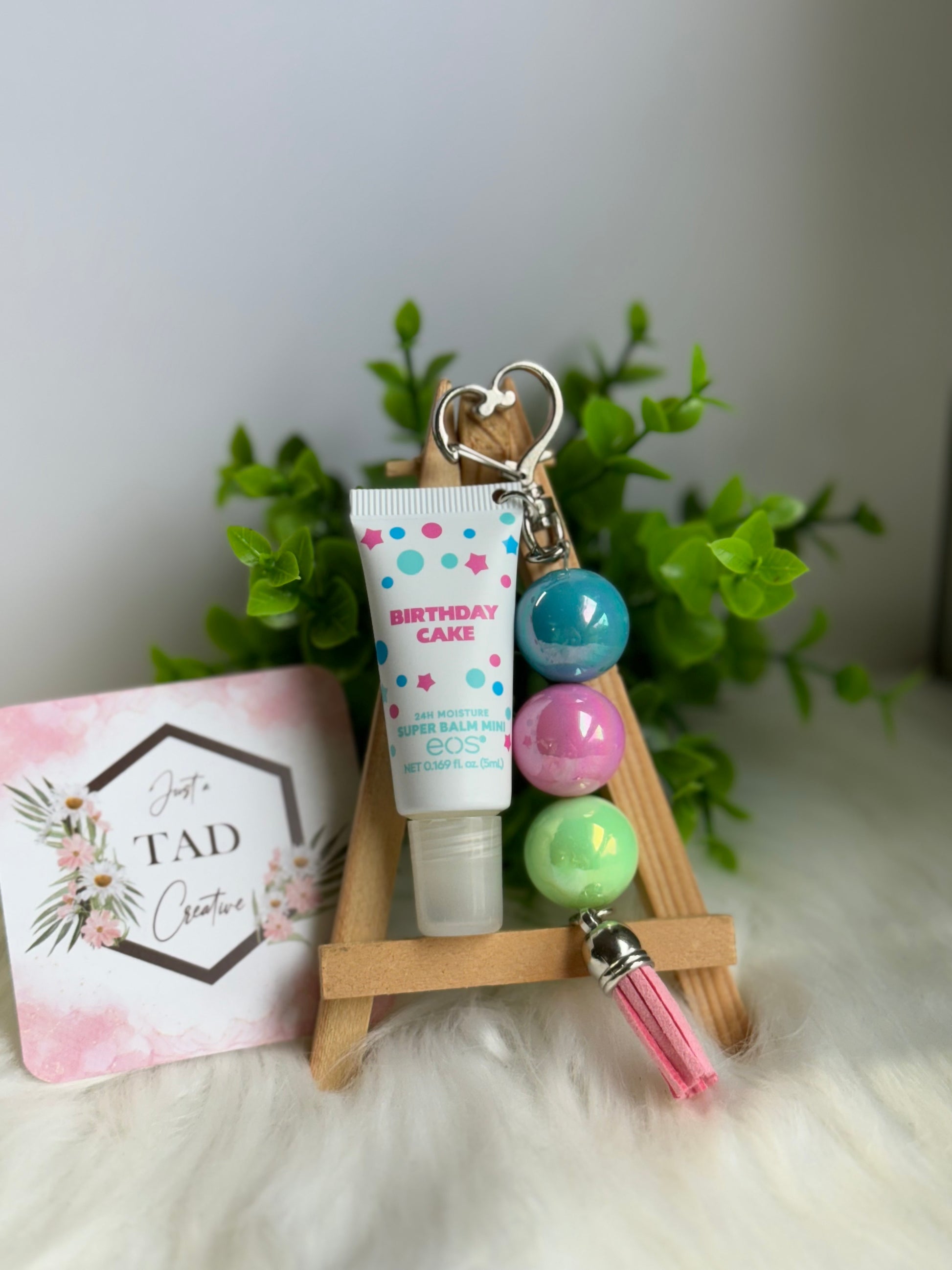 - Includes: 1 lip gloss and beaded keychain **as pictured**