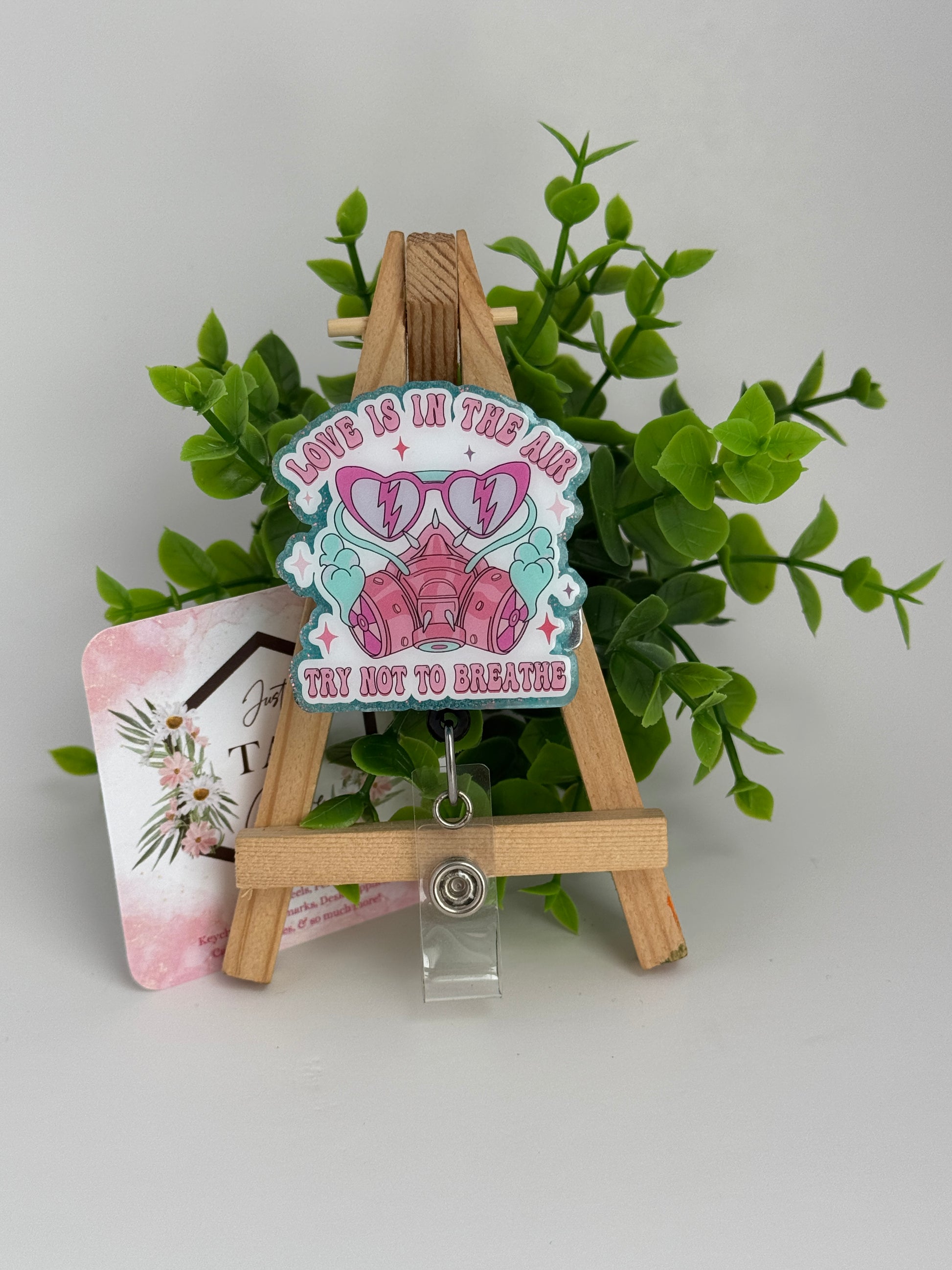 Spread some laughs this Valentine's Day with our Love is in the Air Anti-Valentine Interchangeable Badge Reel Topper. Featuring a funny message of "try not to breathe," this topper is perfect for keeping the mood light and hearted. Its interchangeable design allows for endless customization.