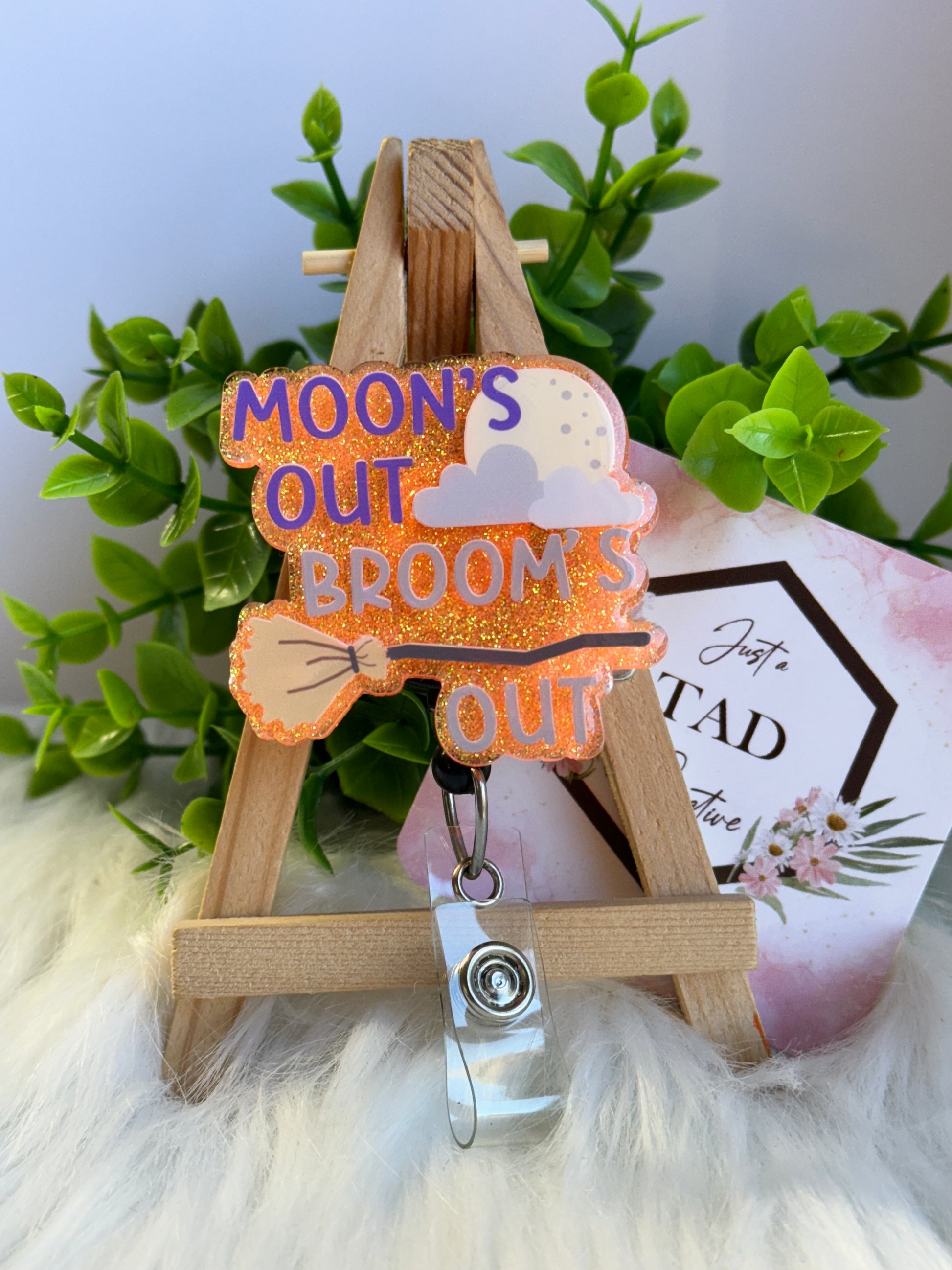 Get ready to show off your witchy style with the Moon's out Broom's out Interchangeable Badge Topper! This badge reel topper feature a moon and broom design. No more boring badges for you - switch up your look with a twist of the wrist (or wand)!