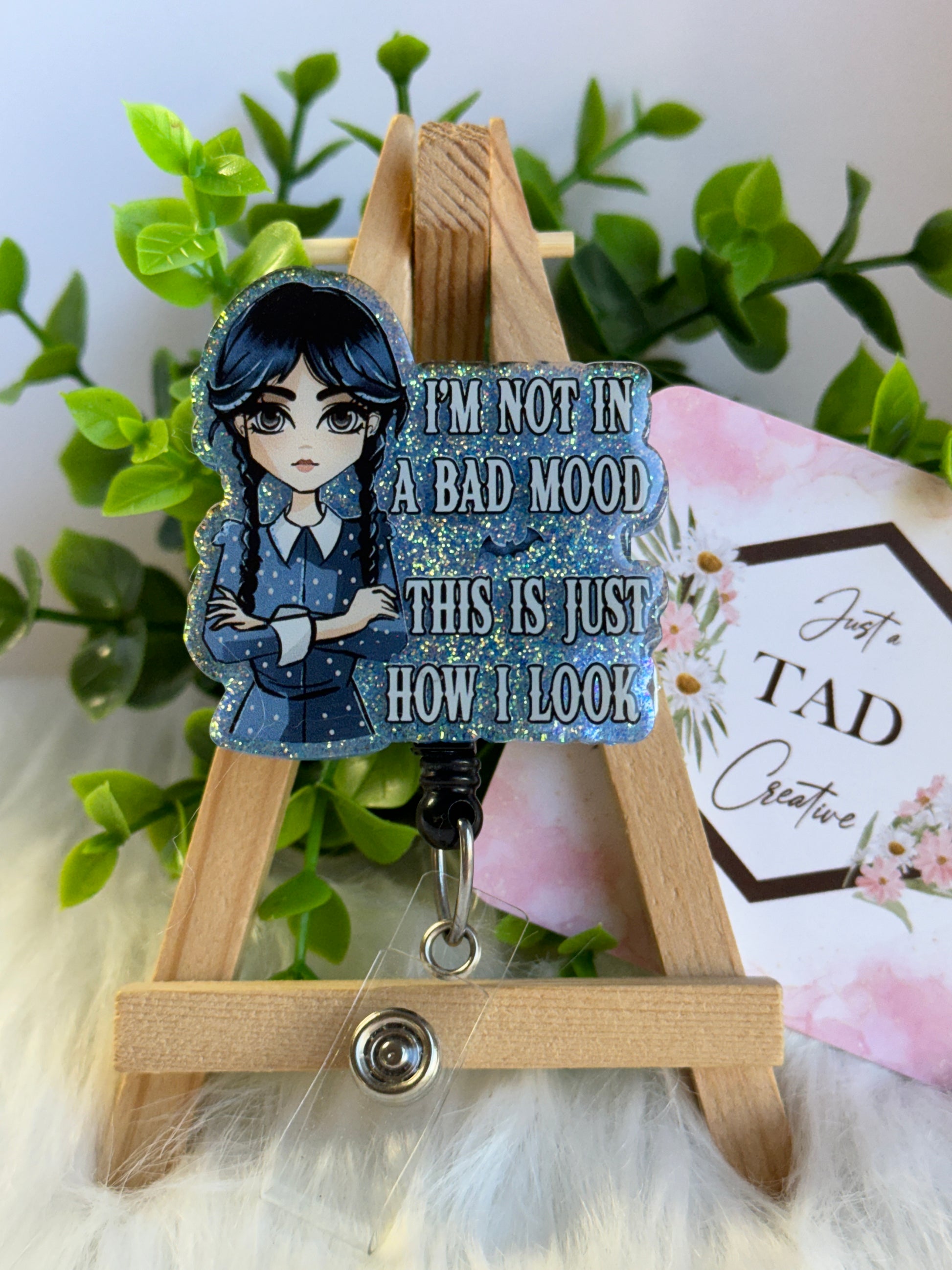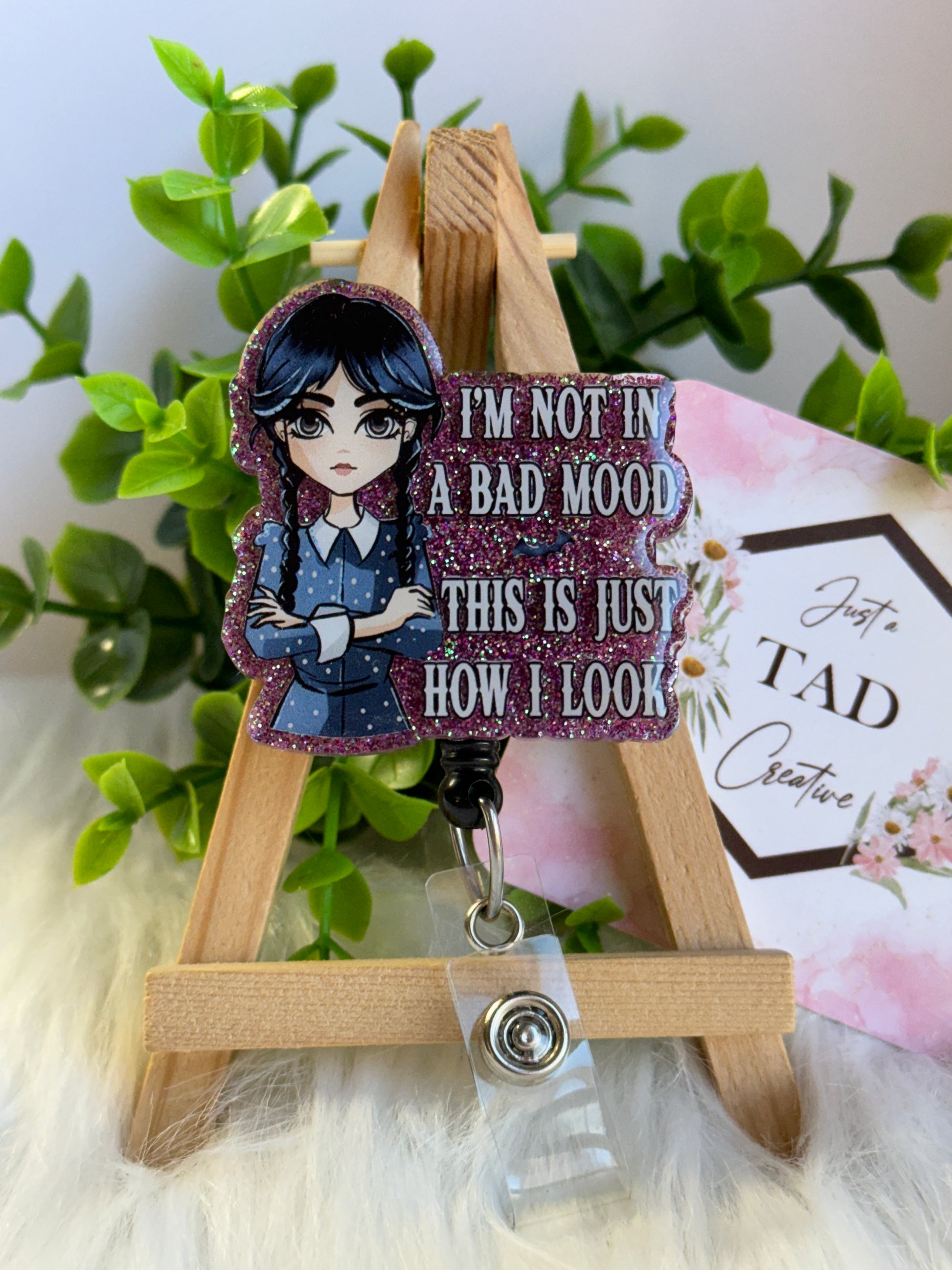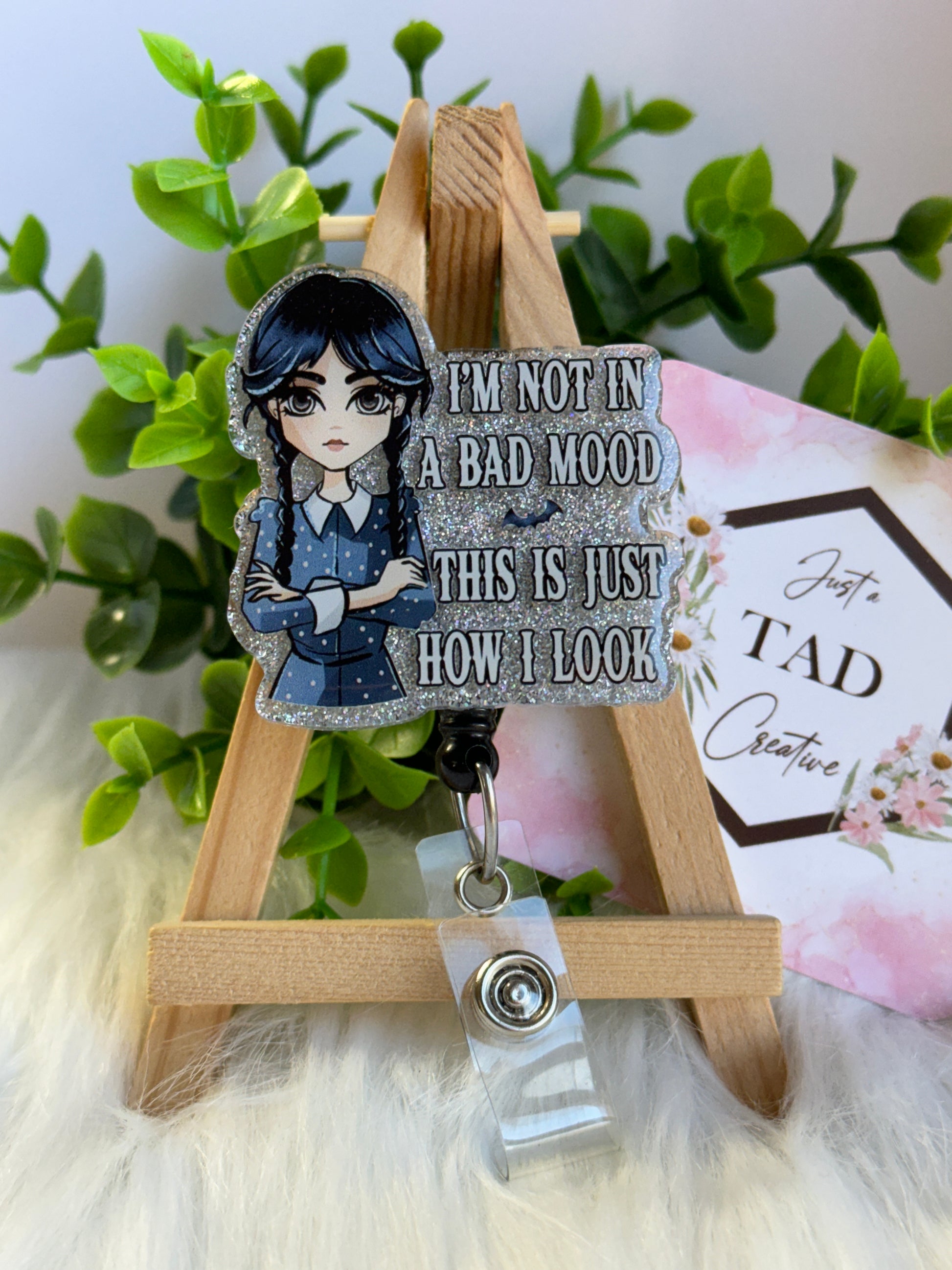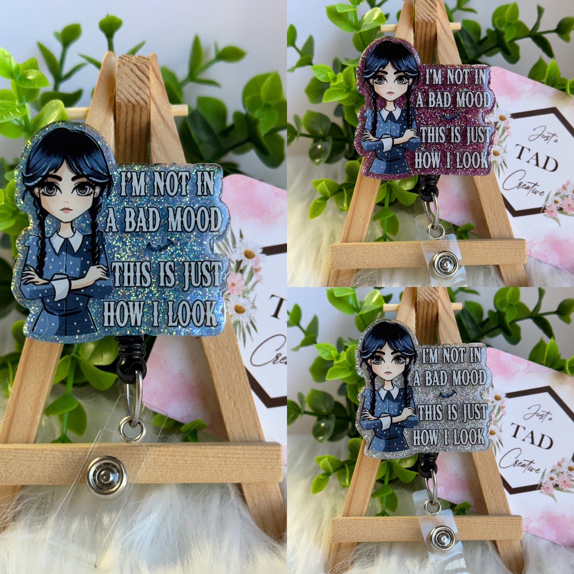 Switch up your style with our Not in a Bad Mood Interchangeable Topper. Featuring Wednesday Adams' iconic bad mood expression, this interchangeable badge topper allows you to express your mood with a sense of humor. Perfect for any quirky fashionista