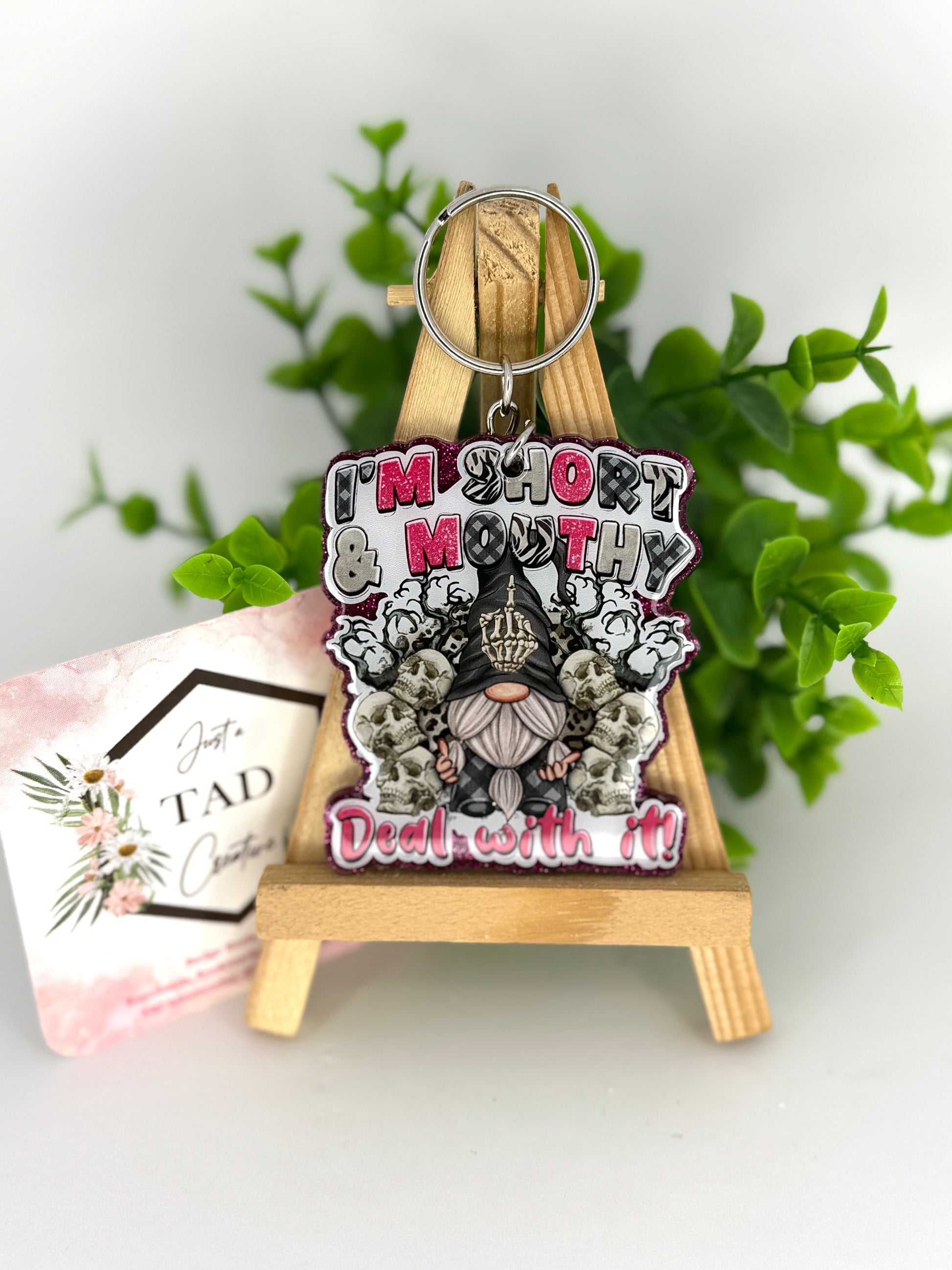 Short & Mouthy Gnome Adult Glittered Keychain / Bag Tag