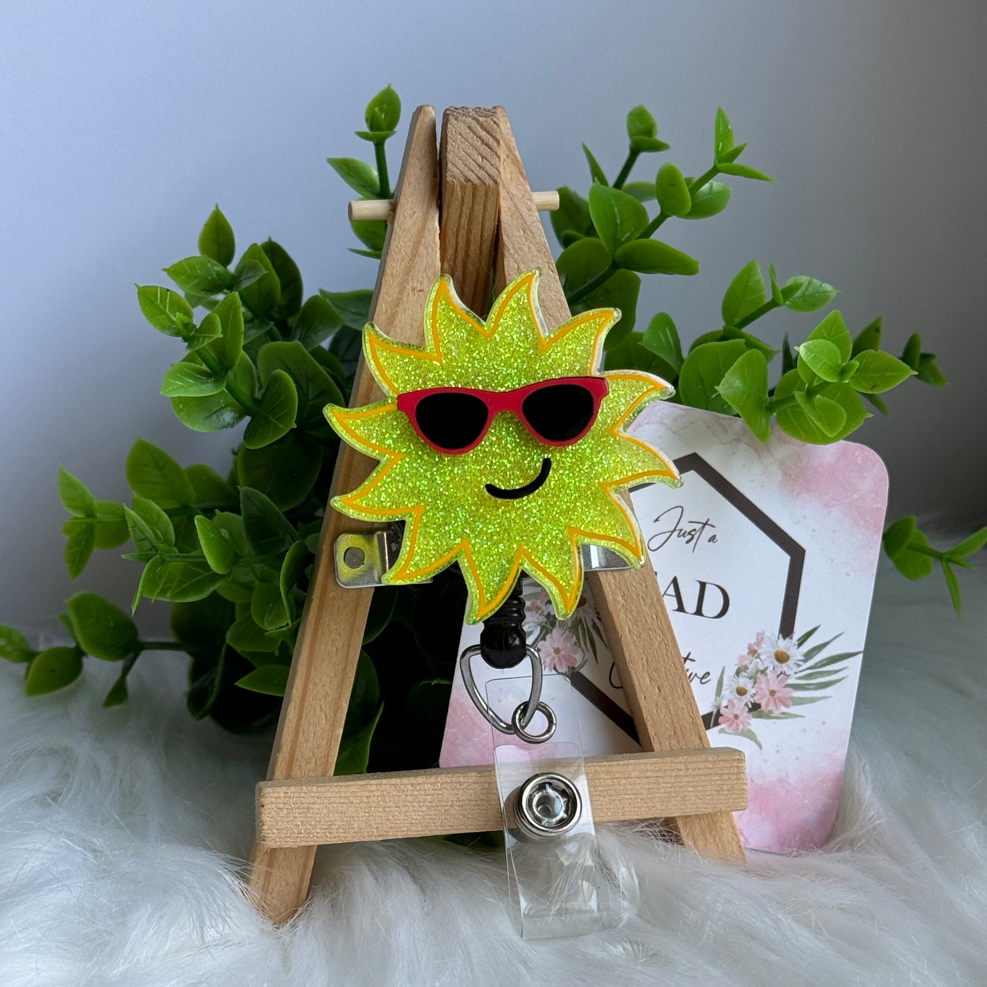 Bring some sunshine to your workday with our Sun with Sunglasses Interchangeable Badge Reel Topper. This playful topper adds some summer vibes to your work badge. Stay cool and stylish with the ability to switch out the topper for a new look. No more dull work days!