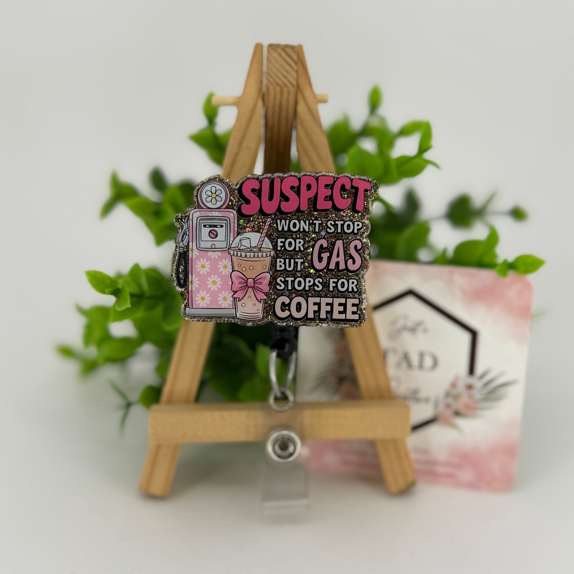 Show off your sense of humor with this Suspect Won't Stop for Gas but Stops for Coffee Interchangeable Badge Topper. Perfect for anyone who knows that coffee is non-negotiable, even when gas isn’t. This funny badge topper adds a playful twist to your work ID, making it clear that your priorities are as unique as your style. Easy to swap out and sure to spark smiles, it’s a lighthearted way to keep your badge fresh and fun.