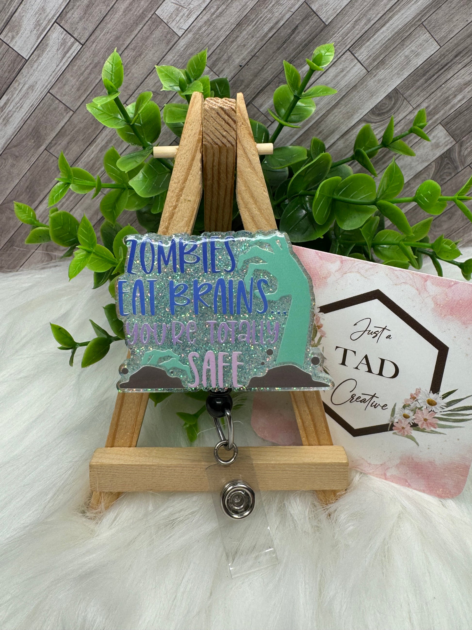 Upgrade your ID game with Zombies Eat Brains badge reel! The interchangeable topper adds a fun twist (or bite) to your daily routine. No need to worry, these zombies only want your brains, not your ID.